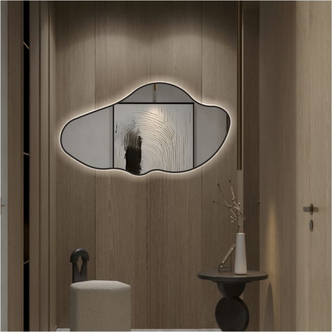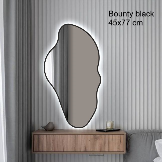 Irregular mirror with backlight and black frame 45×77 cm – a modern and stylish choice