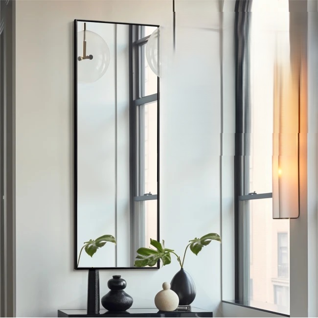 Veidrodis su juodu aliuminio rėmu 110×40 cm