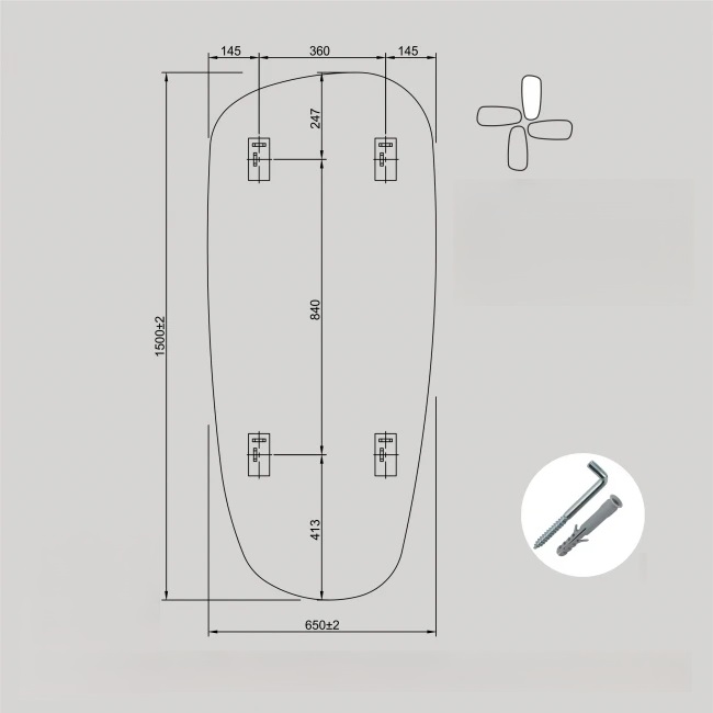 Veidrodžio išmatavimai: 65×150 cm