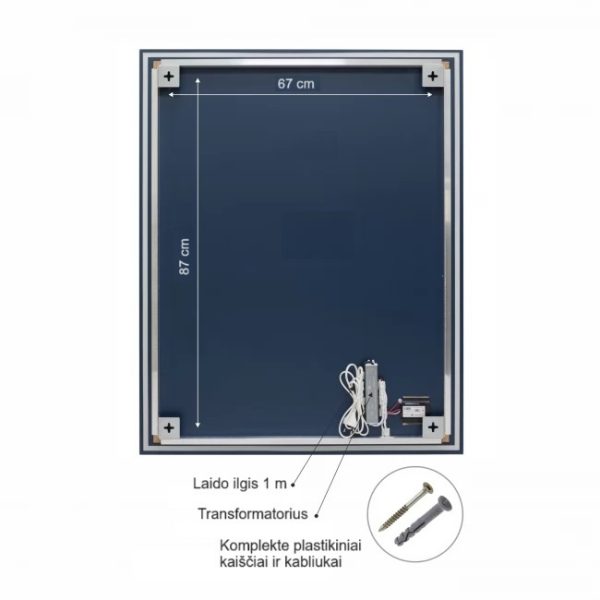 Veidrodžio išmatavimai: 100x80x2,5 cm