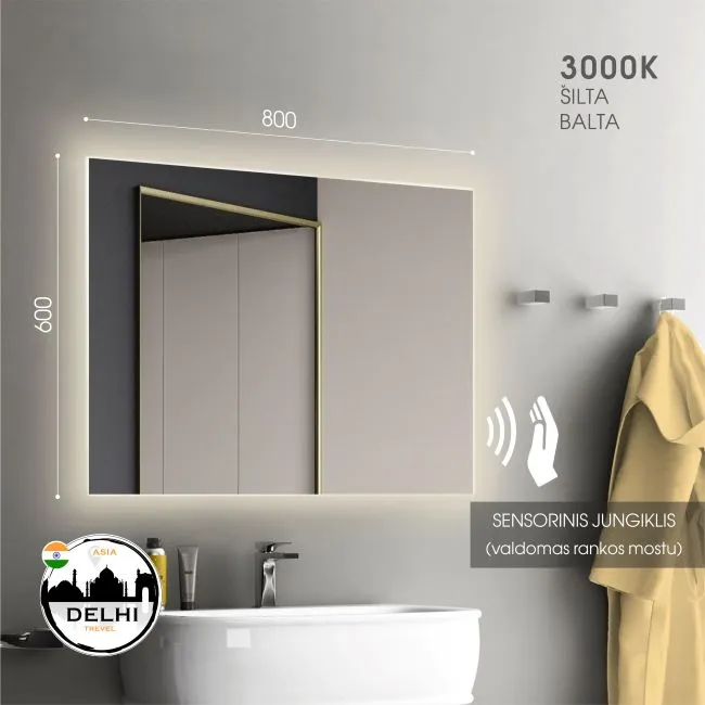 Veidrodis su apšvietimu 80×60 cm, Delhi 8060
