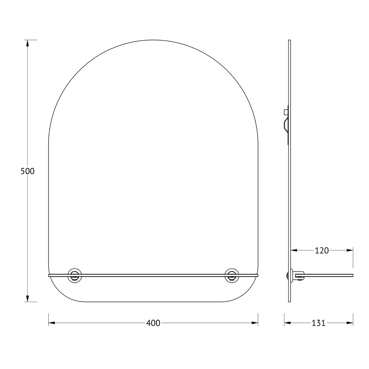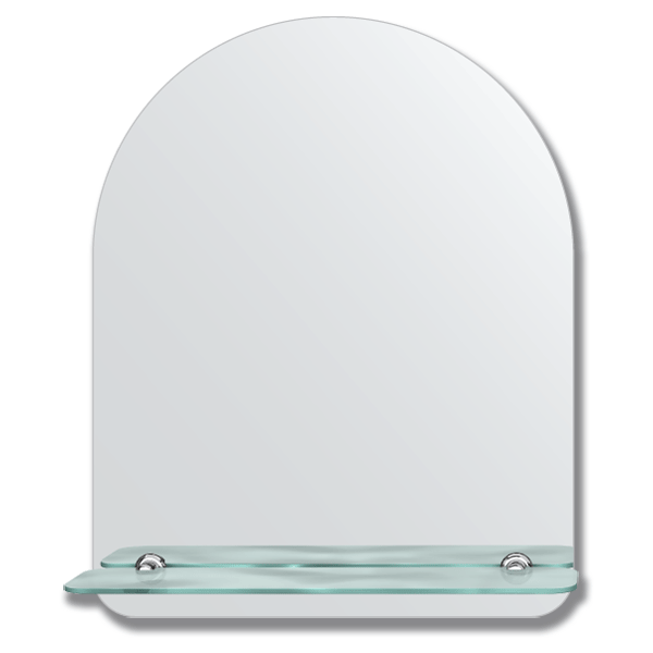 Gražus sieninis veidrodis su lentynėle ir 5 mm facetu. Veidrodis yra atsparus drėgmei, skirtas vonios kambariui. Veidrodis komplektuojamas su pakabinimo elementais ir matinio stiklo lentynėle.