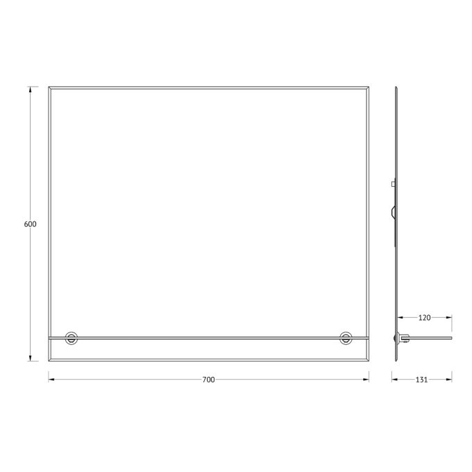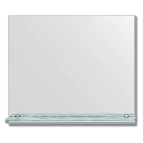 Gražus sieninis veidrodis su lentynėle ir 5 mm facetu. Veidrodis yra atsparus drėgmei, skirtas vonios kambariui. Veidrodis komplektuojamas su pakabinimo elementais ir matinio stiklo lentynėle.