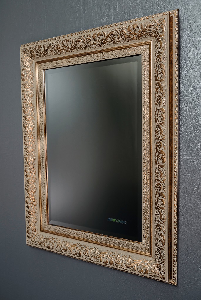 Labai gražus klasikinis veidrodis su rėmu. Veidrodžio rėmas stačiakampio formos. Rėmo plotis 109 mm, spalva sidabrine. Veidrodis yra atsparus drėgmei tinka vonios kambariui. Šis veidrodis būtinai pagyvins bei papuoš, bet kurį kambarį Jūsų namuose . Veidrodžio rėmas pagamintas iš poliuretano dervos mases.