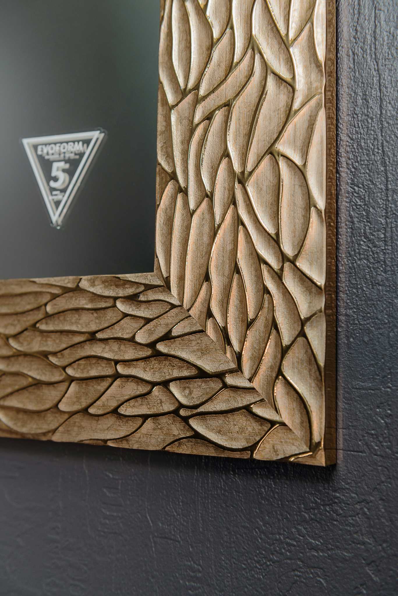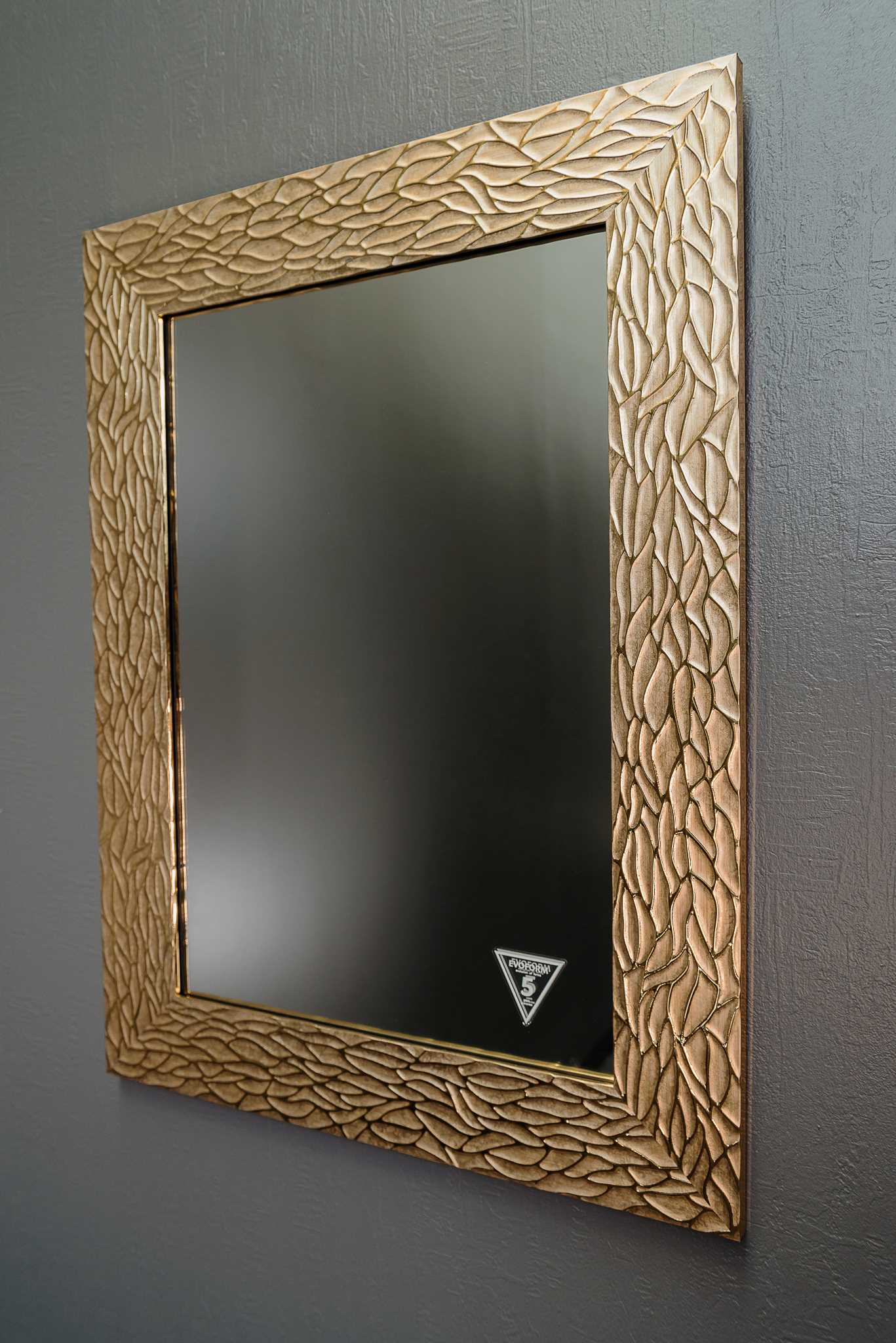 Labai gražus veidrodis su rėmu. Veidrodžio rėmas stačiakampio formos. Rėmo plotis 90 mm. Veidrodžio rėmas auksinės spalvos. Veidrodis yra atsparus drėgmei tinka net vonios kambariui. Šis veidrodis būtinai papuoš, bet kurį kambarį Jūsų namuose. Veidrodžio rėmas pagamintas iš poliuretano dervos masės.