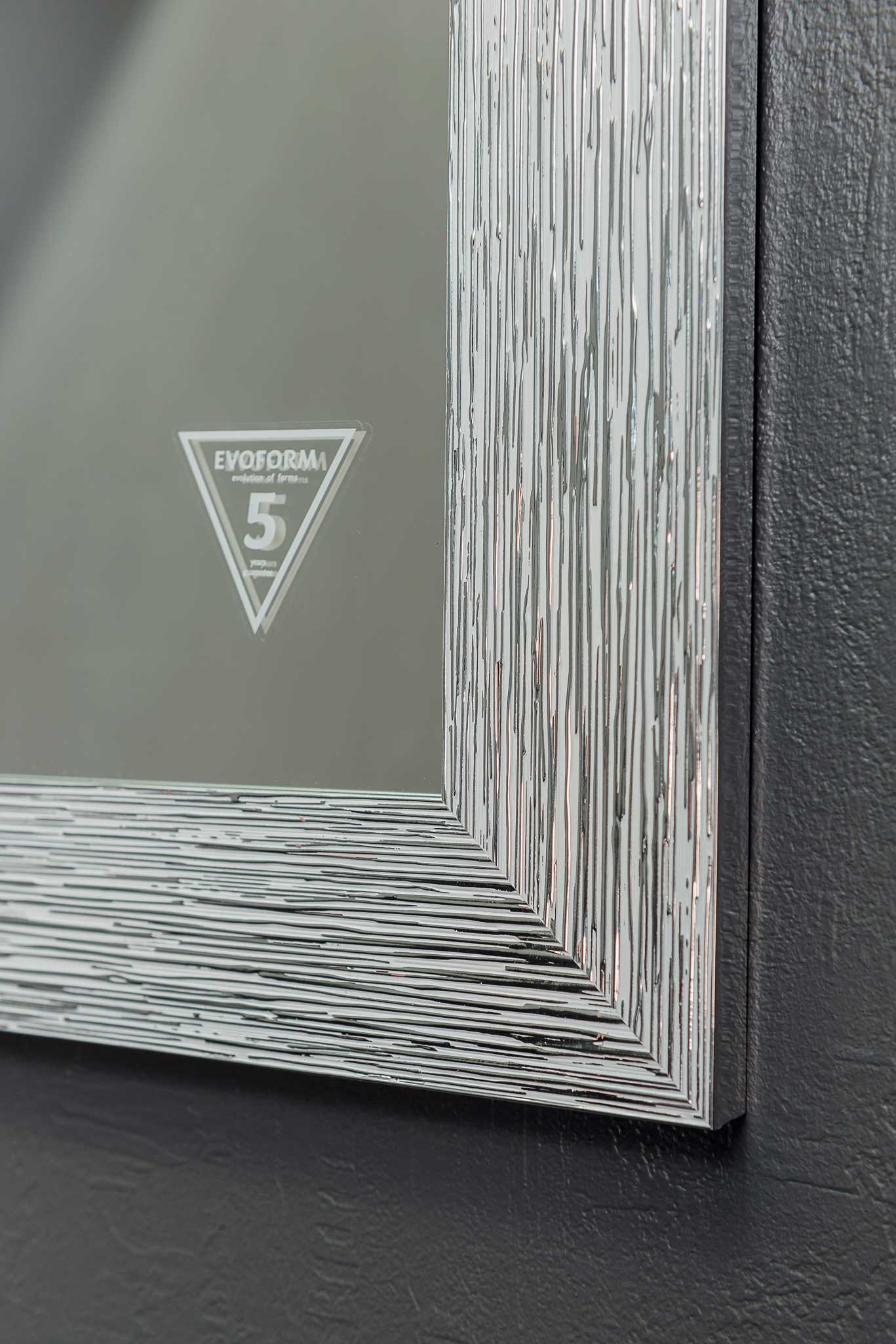 Labai gražus veidrodis su rėmu. Veidrodžio rėmas stačiakampio formos. Rėmo plotis 70 mm. Veidrodžio rėmas sidabrinės spalvos. Veidrodis yra atsparus drėgmei tinka net vonios kambariui. Šis veidrodis būtinai papuoš, bet kurį kambarį Jūsų namuose. Veidrodžio rėmas pagamintas iš poliuretano dervos masės.